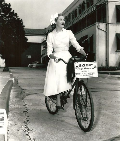 If you don’t ride yet and seek inspiration, there’s plenty to be had on the Internet courtesy of over 800 women’s bike blogs alone and many more blogs by writers all over the world. You’ll see bikes more and more frequently in advertising. If you have a favorite movie star you need to check out the blog Rides a Bike with its images like the one of Grace Kelly shown here. Smart people ride bikes–Albert Einstein is famously supposed to have hit upon his theory of relativity while riding his bike.